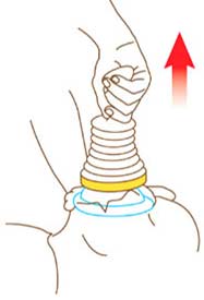Just place the mask over the mouth and nose of the victim. Press down to create suction. The duration of the suction is minimal, which makes LifeVac safe and effective. Now pull back up, and the obstruction will come out of the victim’s throat.
